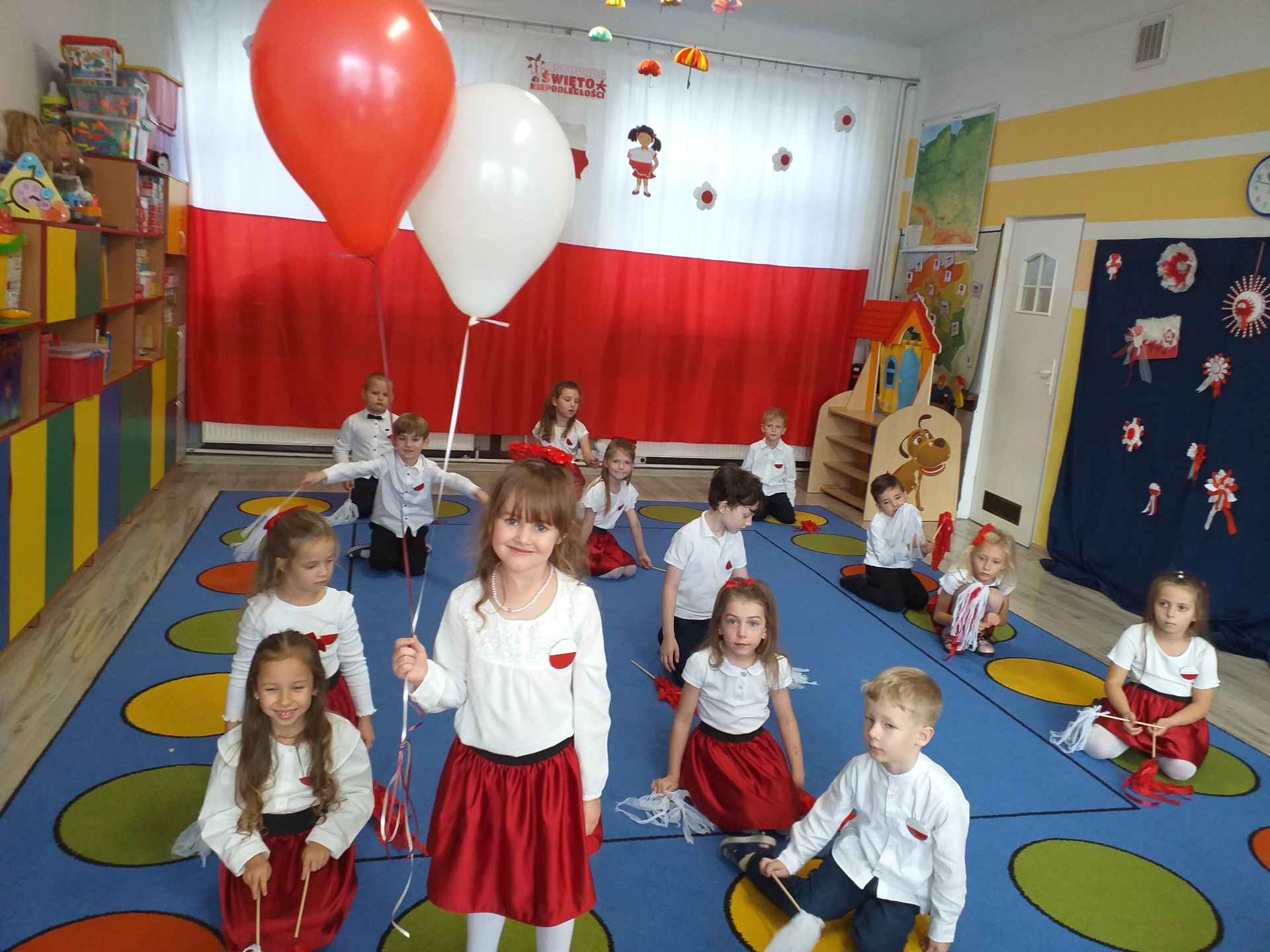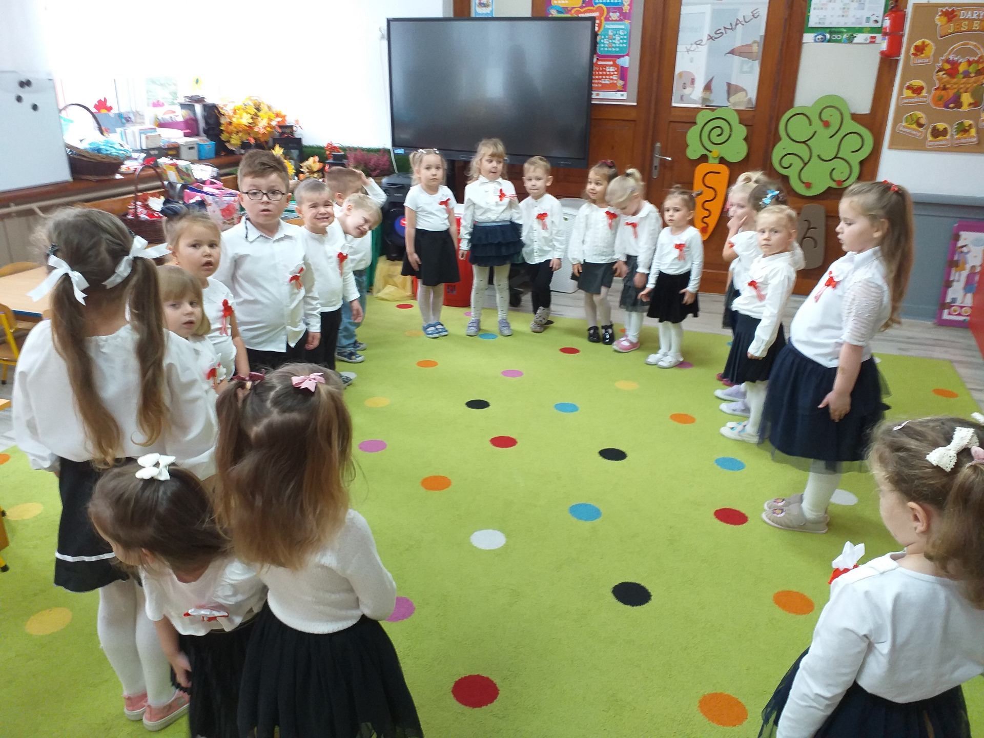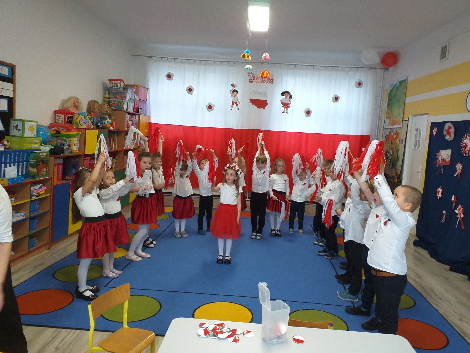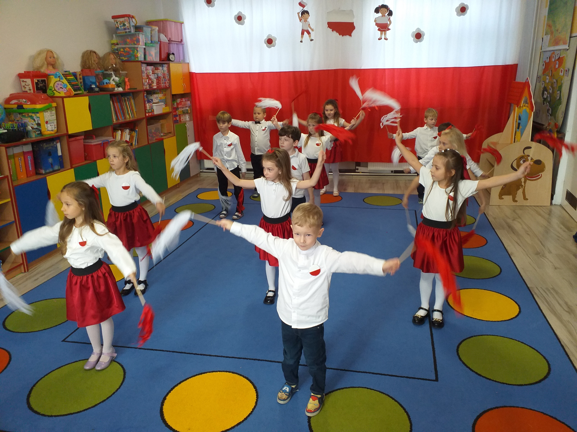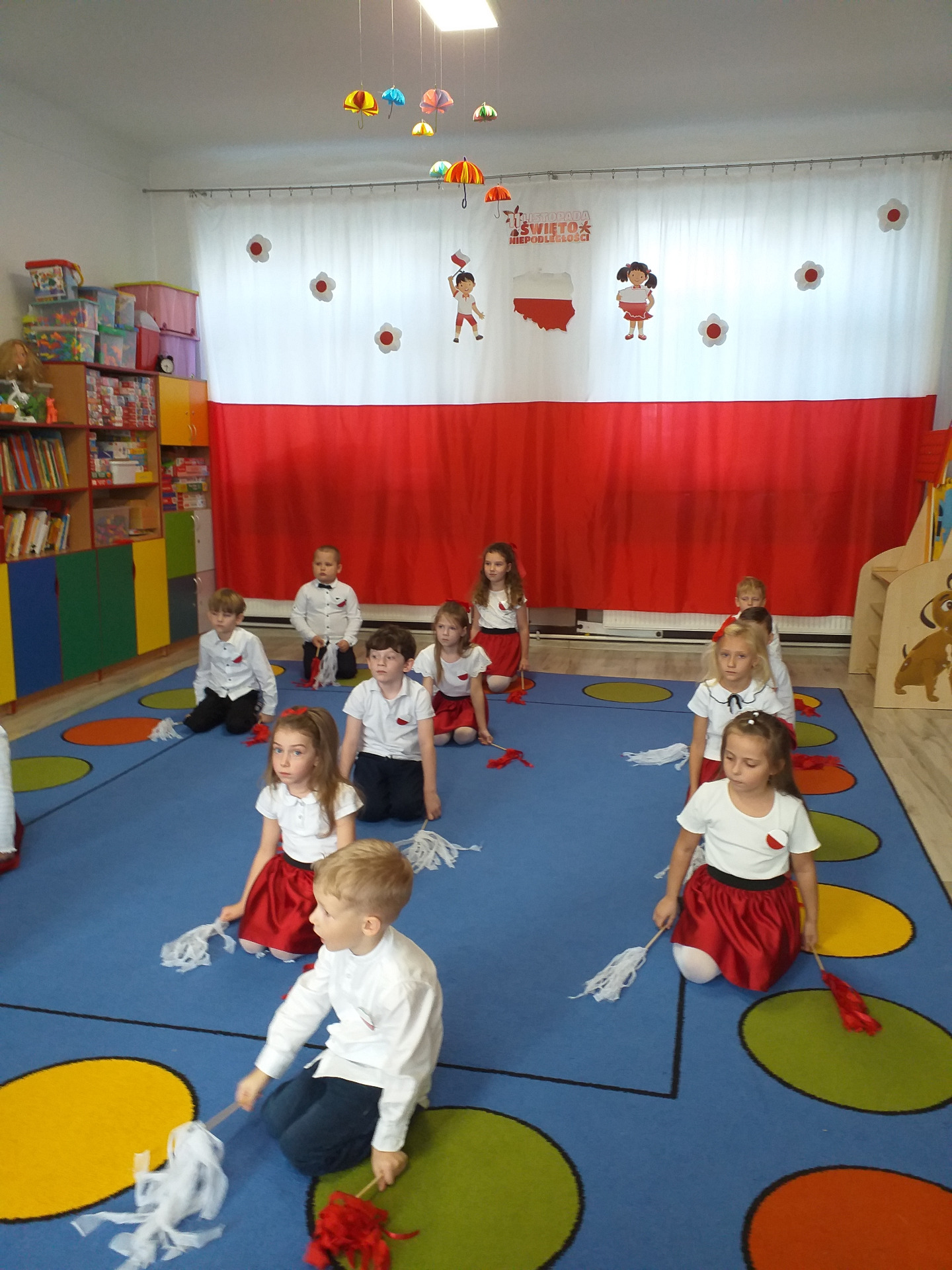 Dnia 07 listopada obchodziliśmy w naszym przedszkolu Święto Niepodległości. Z tej okazji wszystkie dzieci przyszły ubrane na galowo i uroczyście świętowali ten wyjątkowy dla Nas dzień. Ten dzień rozpoczął się rozstrzygnięciem konkursu "KOTYLION NARODOWY” Uroczystość dzieci rozpoczęły od tańca, następnie dumnie, przyjmując właściwą postawę „na baczność”, odśpiewały Hymn Polski „Mazurek Dąbrowskiego”. Głównym celem spotkania było kształtowanie miłości i przywiązania do naszego kraju ojczystego, jego kultury i tradycji oraz poznanie symboli narodowych naszego kraju. Dzięki udziałowi w tego typu uroczystościach przedszkolaki od najmłodszych lat uczą się patriotyzmu, kształtują pozytywne postawy i uczucia patriotyczne.