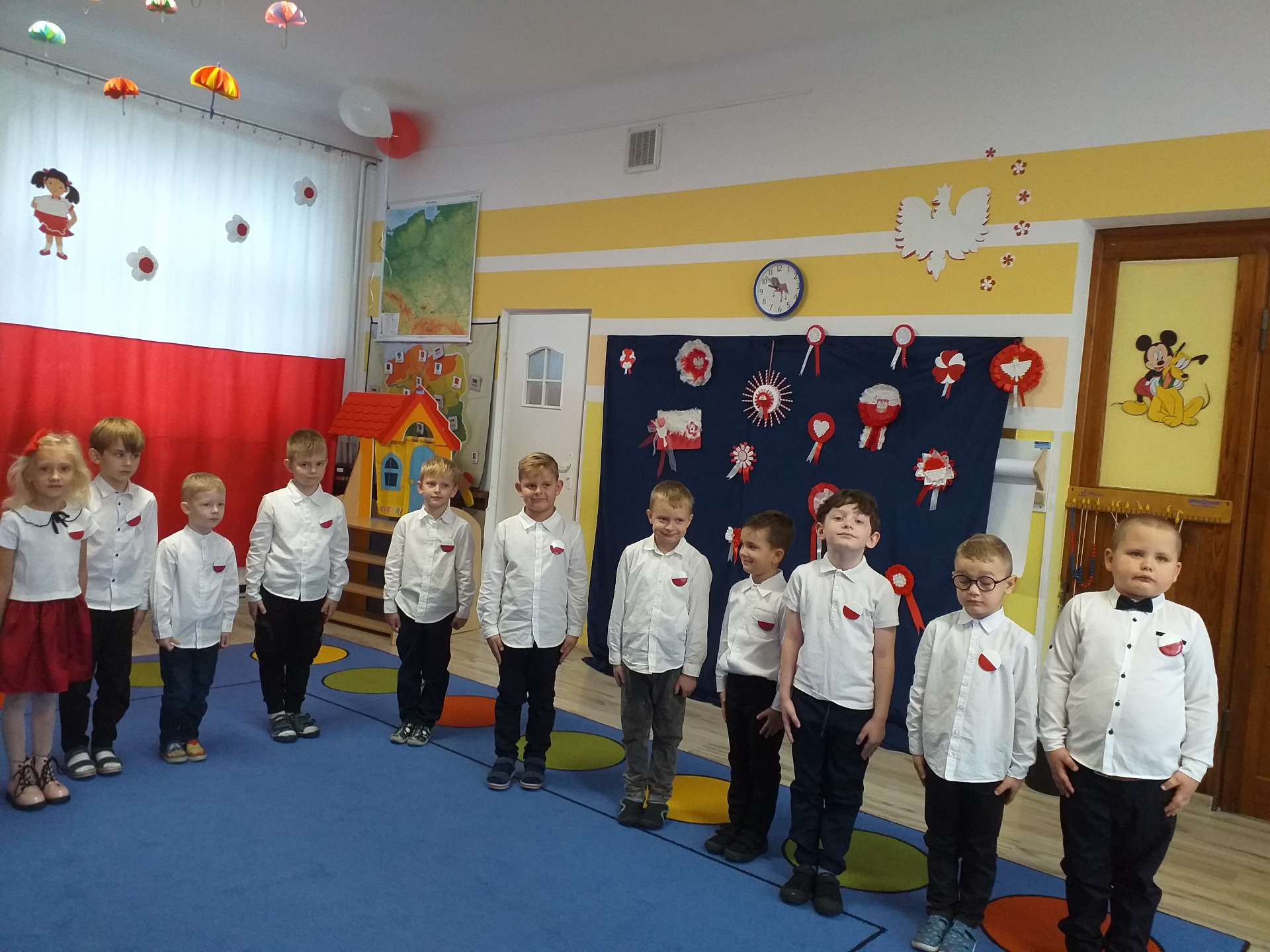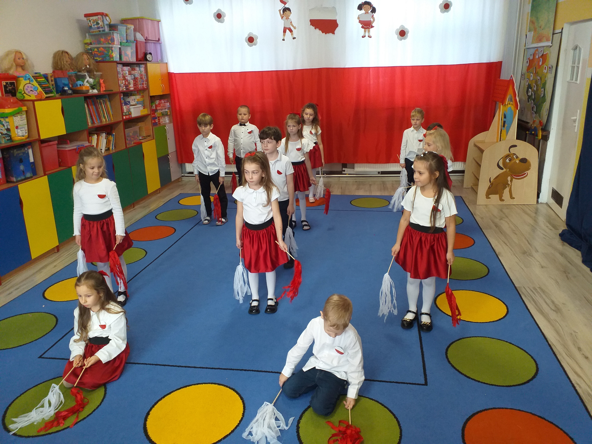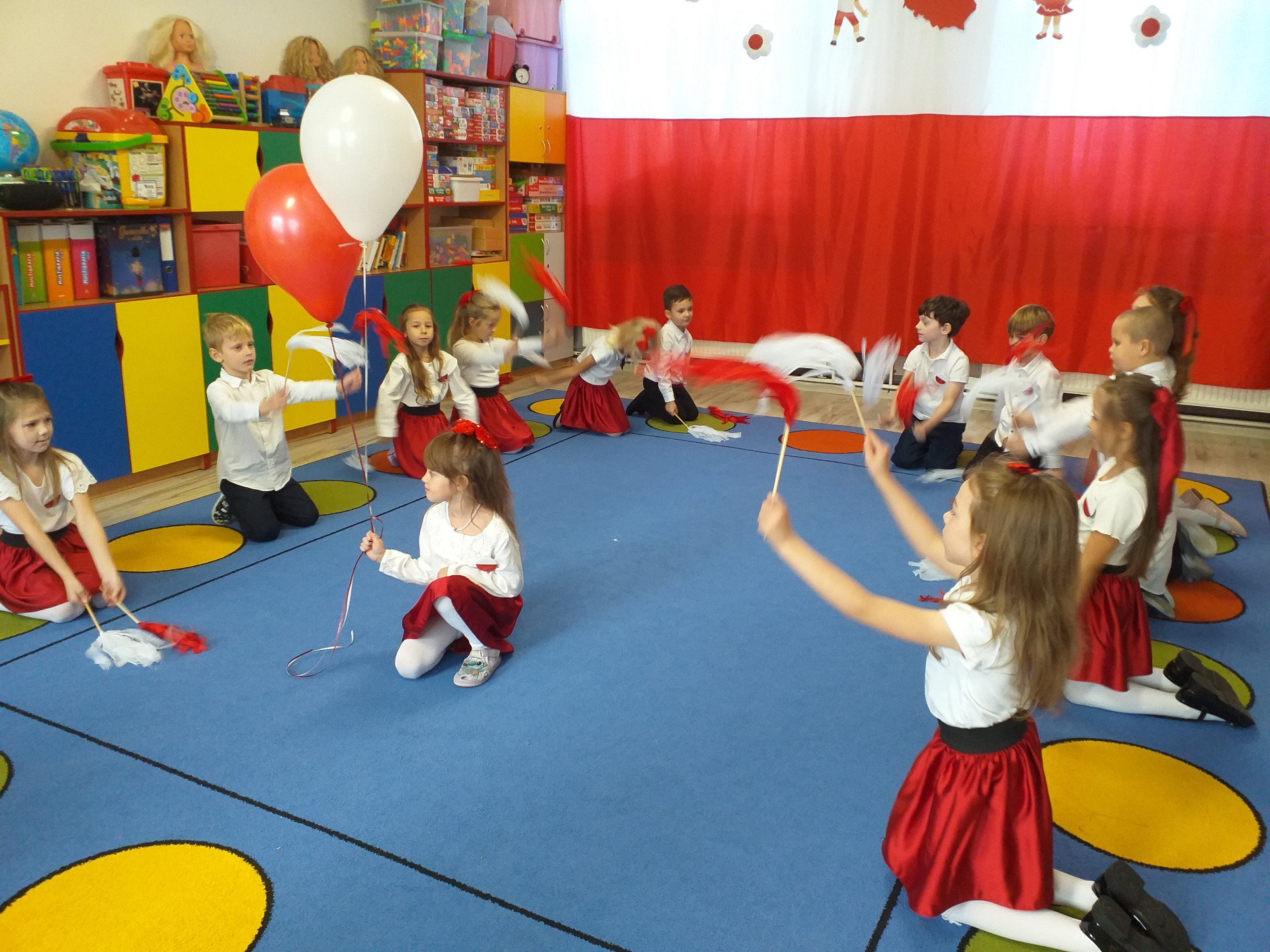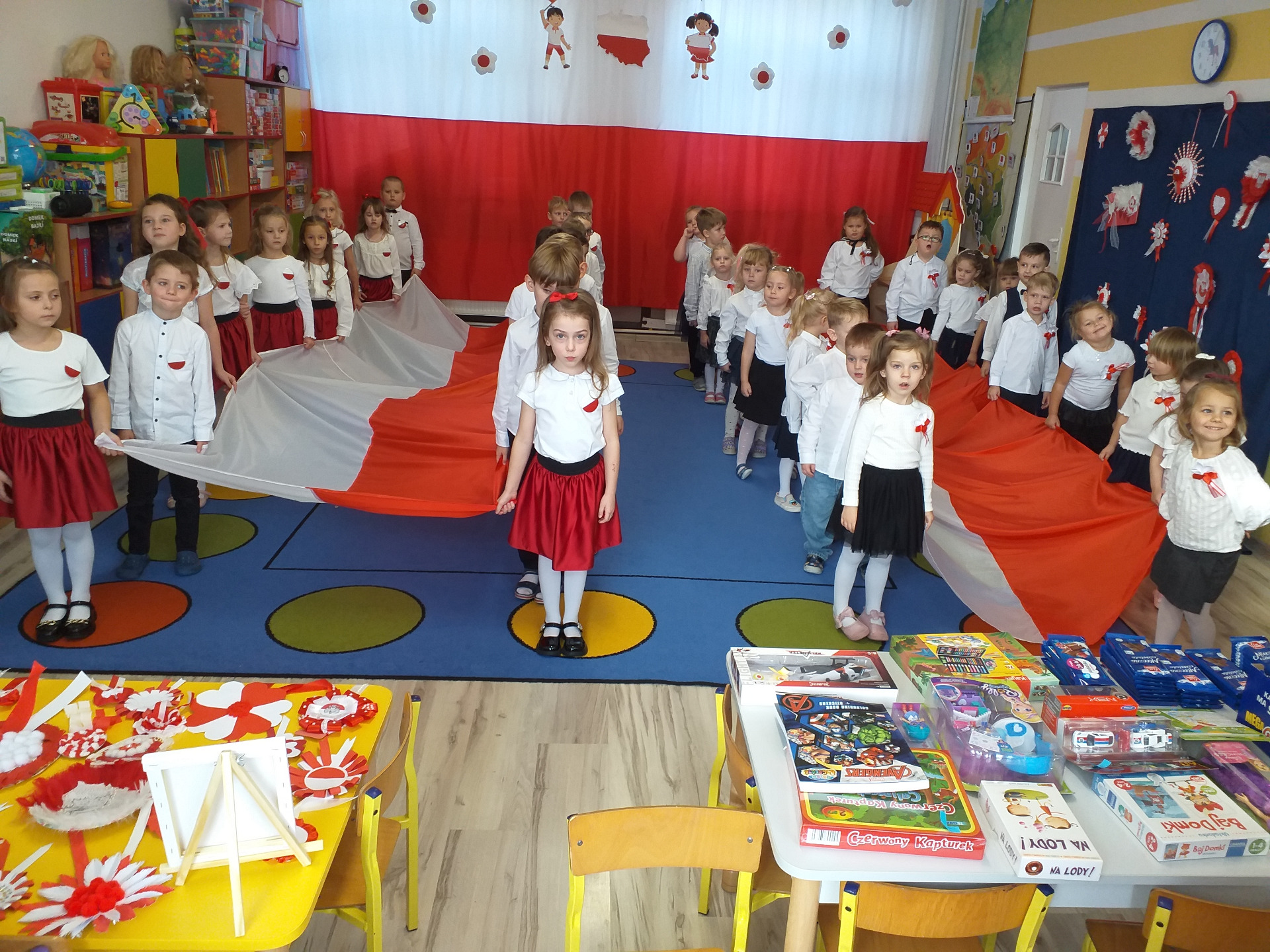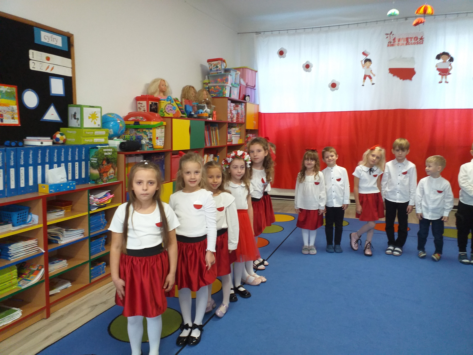 Dnia 07 listopada obchodziliśmy w naszym przedszkolu Święto Niepodległości. Z tej okazji wszystkie dzieci przyszły ubrane na galowo i uroczyście świętowali ten wyjątkowy dla Nas dzień. Ten dzień rozpoczął się rozstrzygnięciem konkursu "KOTYLION NARODOWY” Uroczystość dzieci rozpoczęły od tańca, następnie dumnie, przyjmując właściwą postawę „na baczność”, odśpiewały Hymn Polski „Mazurek Dąbrowskiego”. Głównym celem spotkania było kształtowanie miłości i przywiązania do naszego kraju ojczystego, jego kultury i tradycji oraz poznanie symboli narodowych naszego kraju. Dzięki udziałowi w tego typu uroczystościach przedszkolaki od najmłodszych lat uczą się patriotyzmu, kształtują pozytywne postawy i uczucia patriotyczne.